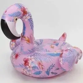 Inflable diseño cisne,en colores celeste y rosa,con decorados de hojas 🍃