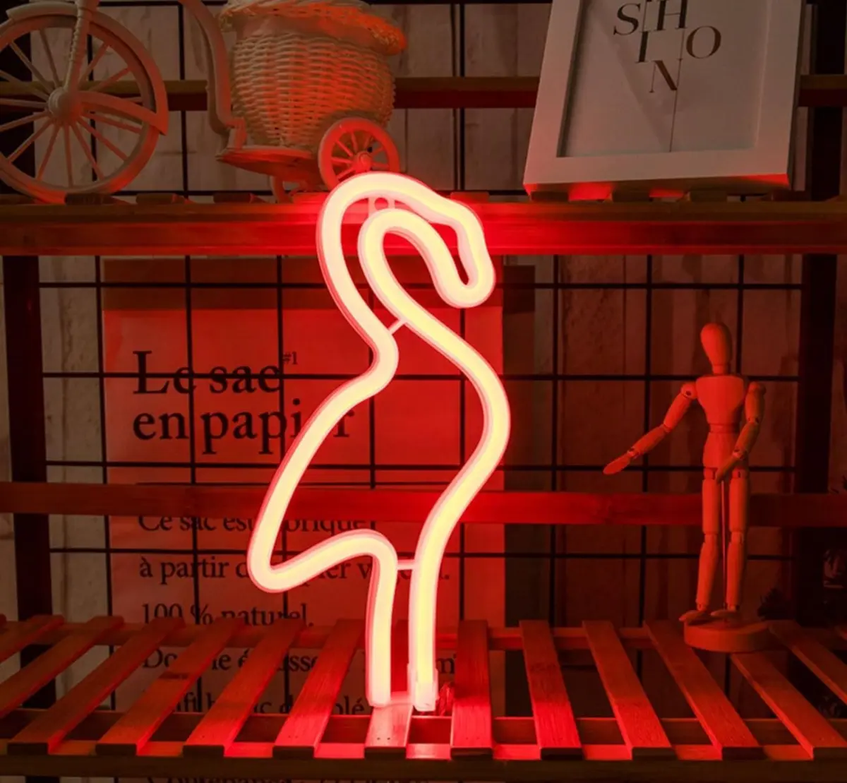 Descripción Lampara Led colgante con diseño de Flamenco. Funciona con 3 pilas AA.(No incluye las pilas).